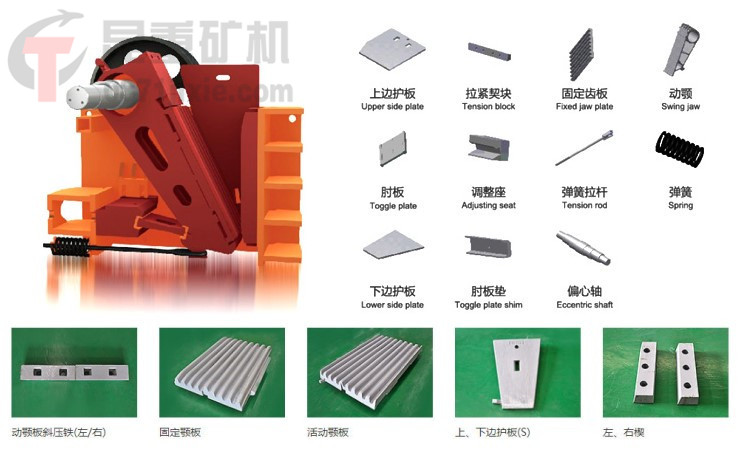 顎式破碎機(jī)易損件示意圖: