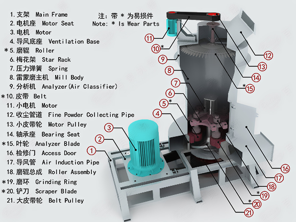 雷蒙磨粉機(jī)工作原理: