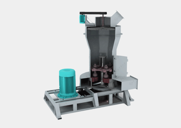 物料研磨后,風(fēng)機(jī)將風(fēng)吹入主機(jī)殼內(nèi),吹起粉末,經(jīng)置于研磨室上方的分析器進(jìn)行分選,細(xì)度過(guò)粗的物料又落入研磨室重磨,細(xì)度合乎規(guī)格的隨風(fēng)流進(jìn)入旋風(fēng)收集器,收集后經(jīng)出粉口排出,即為成品。風(fēng)流由大旋風(fēng)收集器上端的回風(fēng)管回入風(fēng)機(jī),風(fēng)路是循環(huán)的,并且在負(fù)壓狀態(tài)下流動(dòng),循環(huán)風(fēng)路的風(fēng)量增加部分經(jīng)風(fēng)機(jī)與主機(jī)中間的廢氣管道排出,進(jìn)入小旋風(fēng)收集器,進(jìn)行凈化處理。